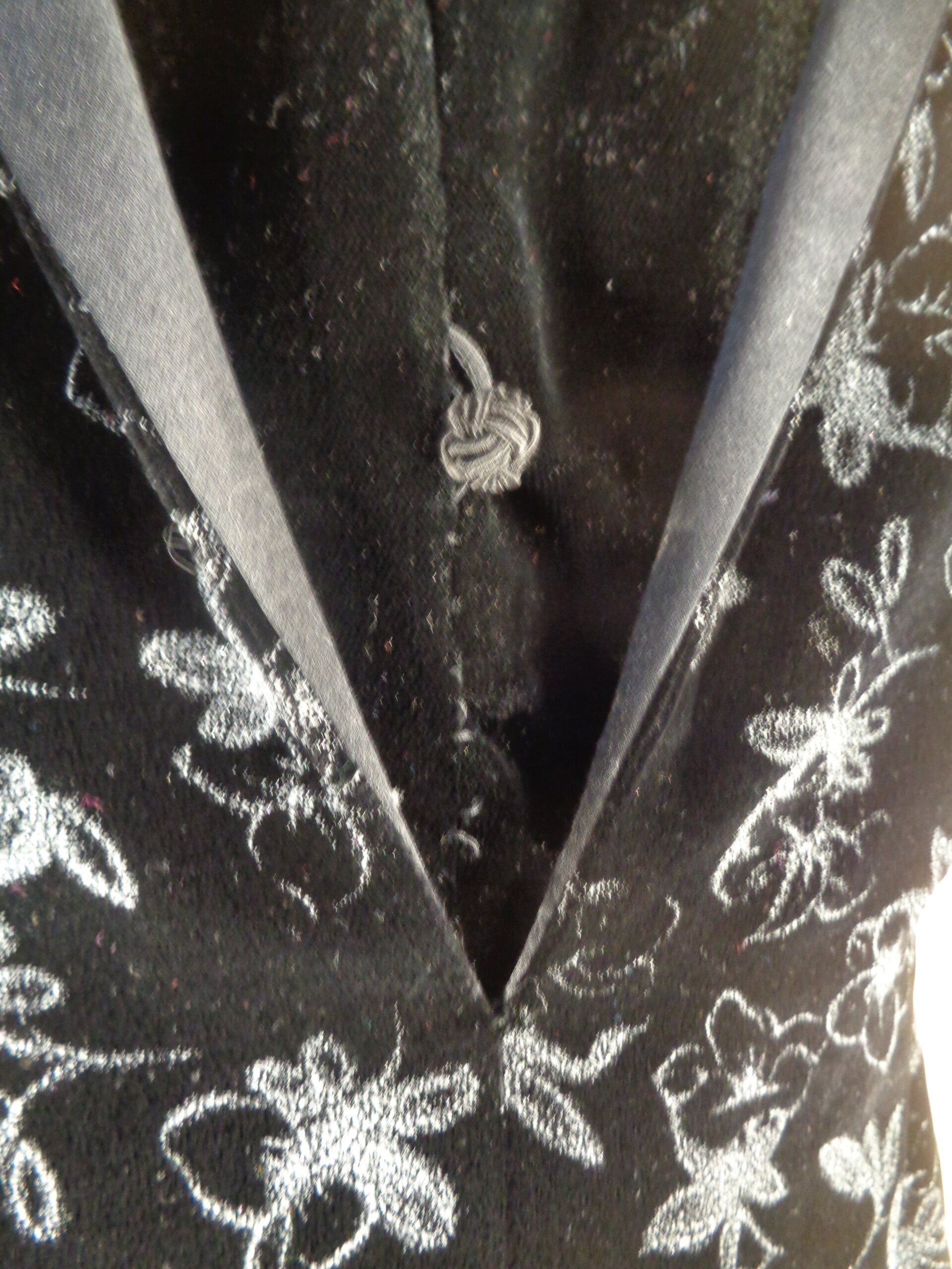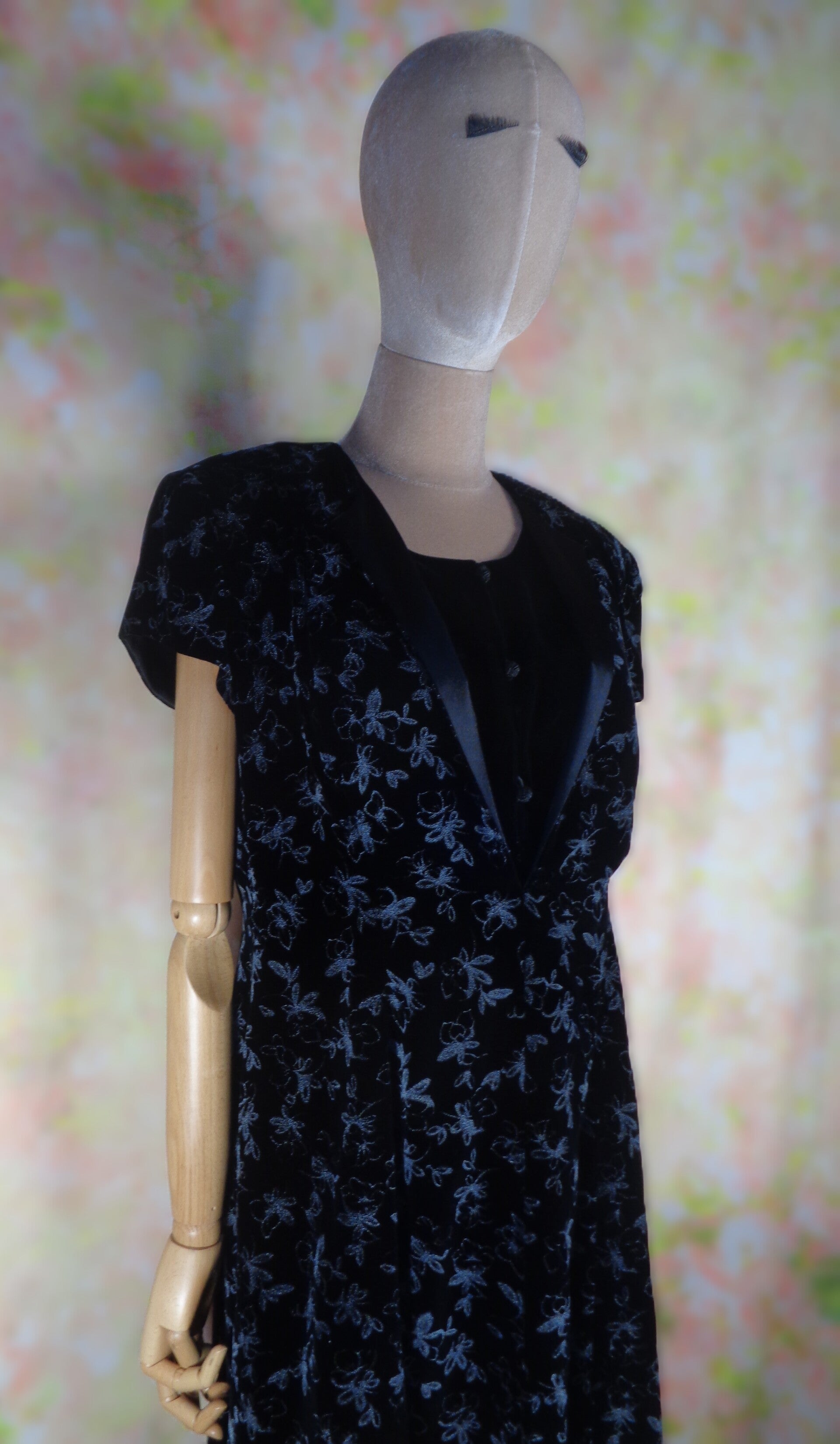 Motifs fleuris argentés et col satin
