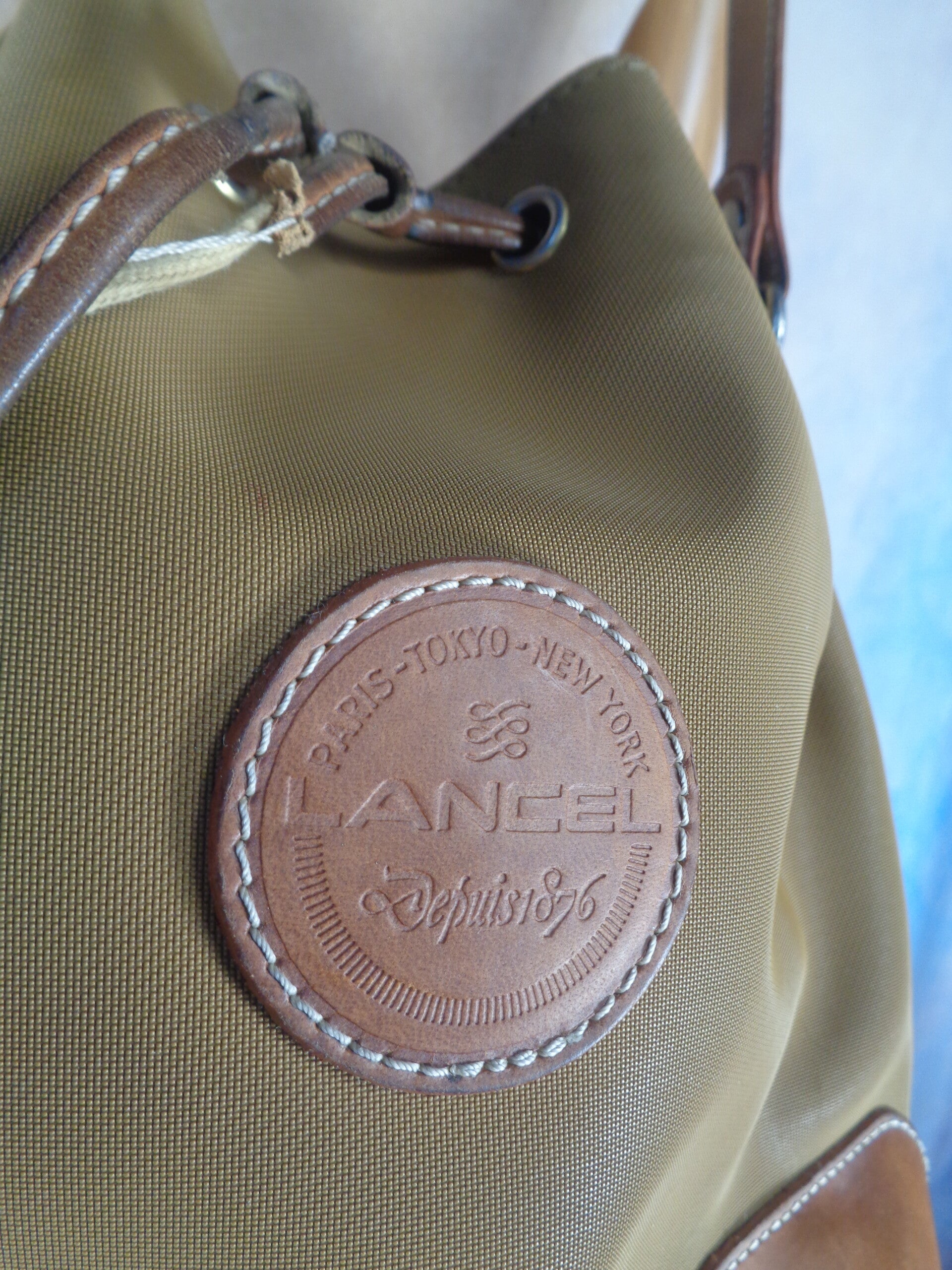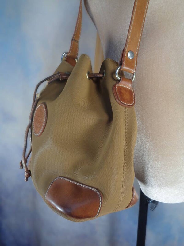 Sac forme seau en cuir toile Lancel