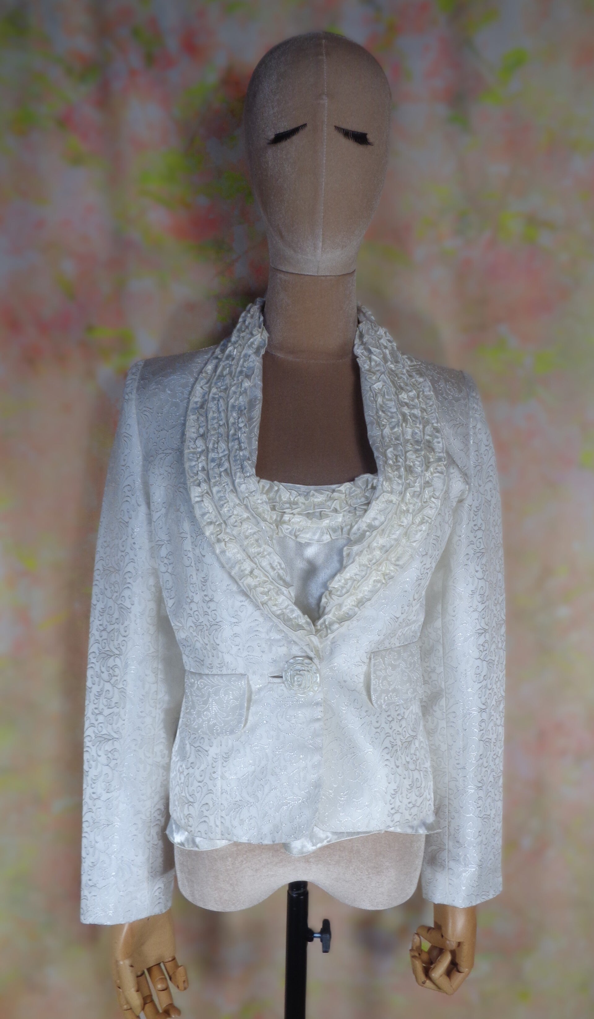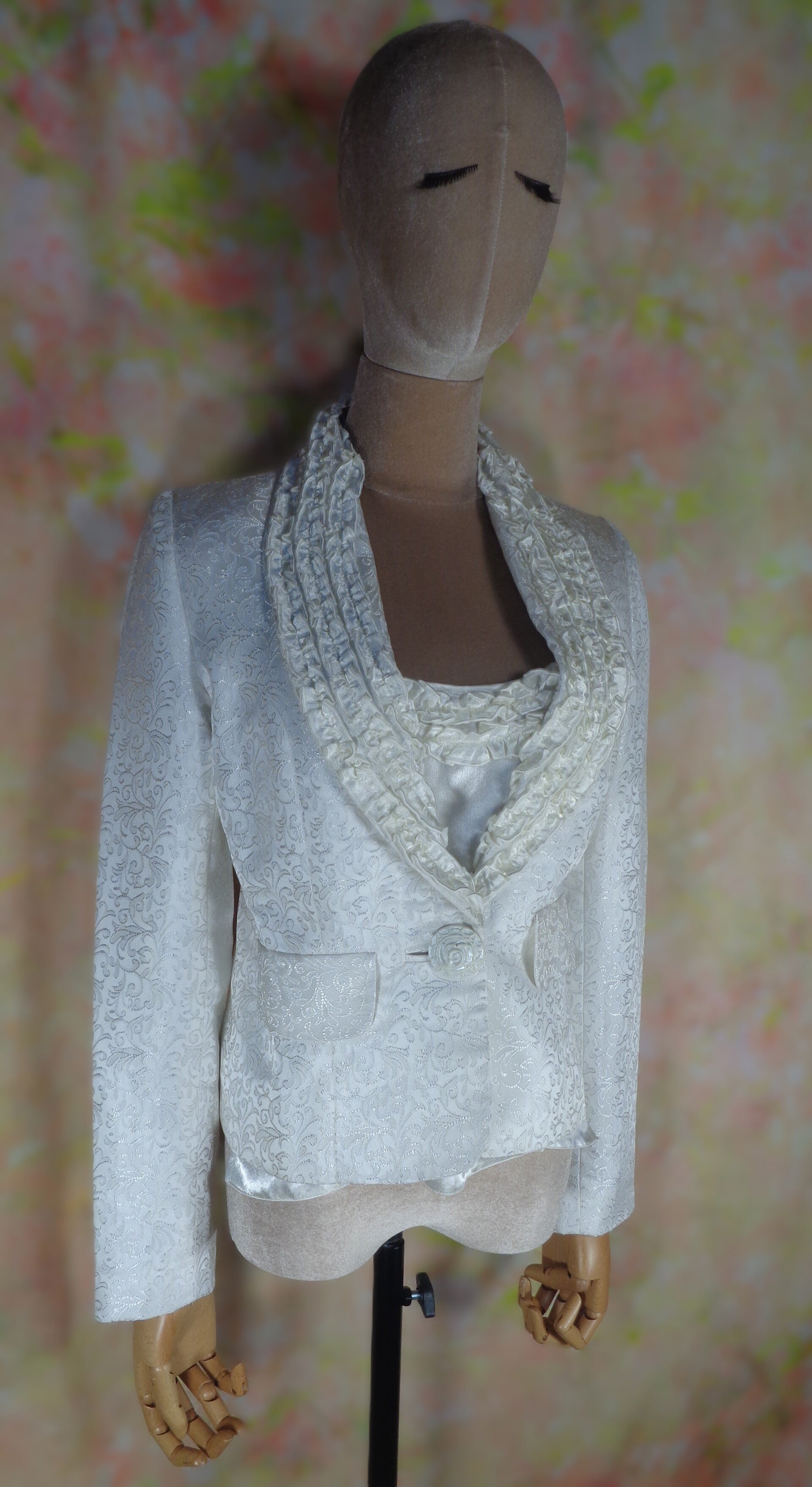 Composé d'une veste brocard et de son top assorti à bordures de volants