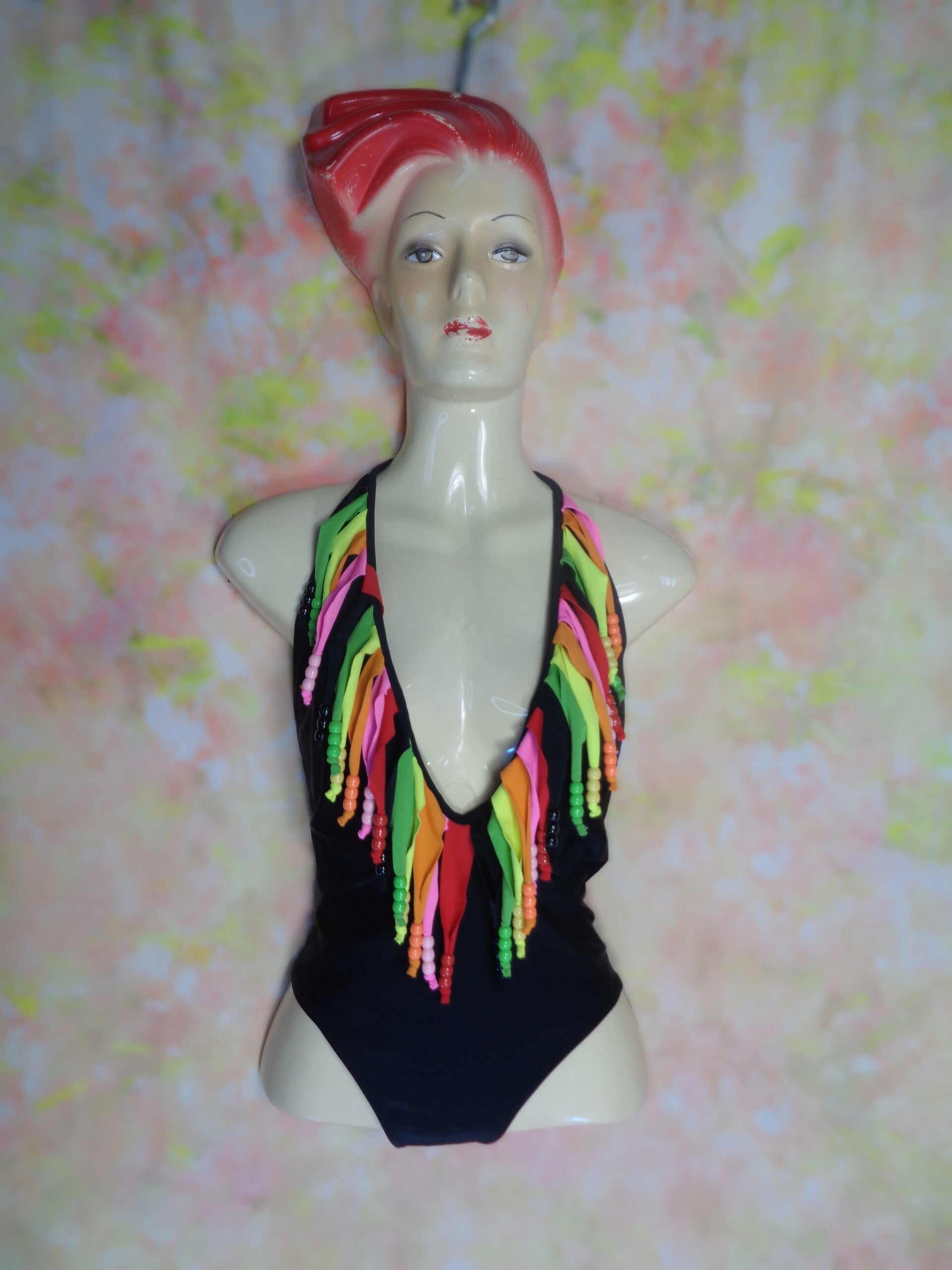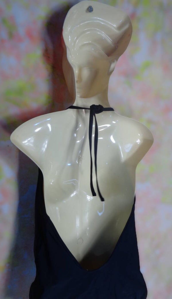 Décolleté bordé de franges perlées, dos nu