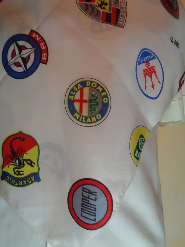 Foulard carré (90 x90 cms) motif de logo de marques de voitures de sport de luxe